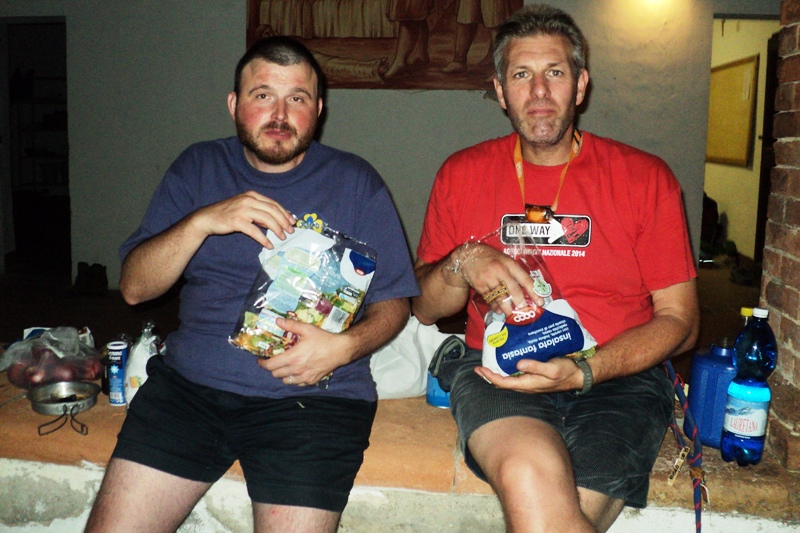Lì abbiamo subito montato le tende sotto una lieve pioggerellina e mangiato sotto una rovinosa grandinata al riparo in una stalla.